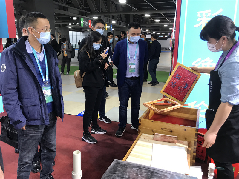 人文交流區(qū)E2區(qū)熱鬧非凡,現(xiàn)場了解傳統(tǒng)手工紙制作技藝。