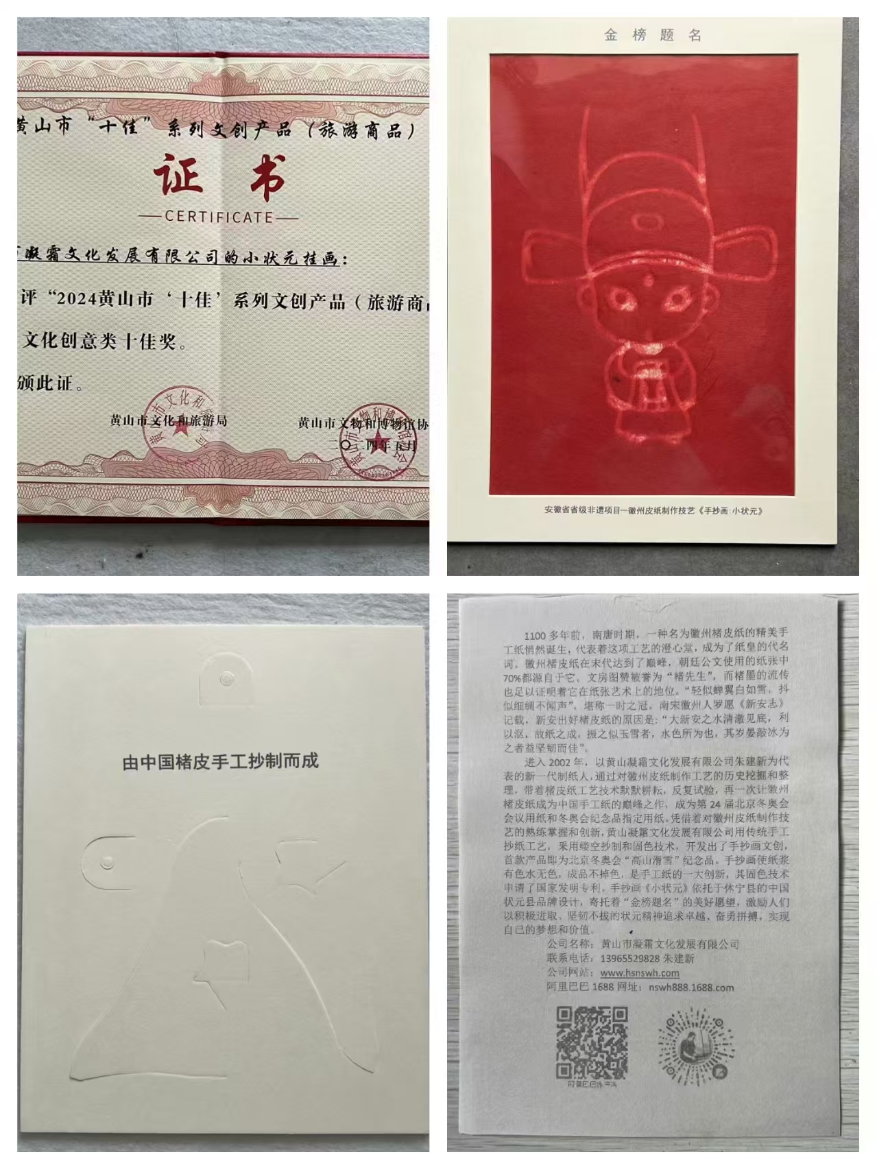 凝霜文化文創(chuàng)《小狀元掛畫(huà)》獲2024年黃山市“十佳”系列文創(chuàng)產(chǎn)品(旅游商品)稱號(hào)
